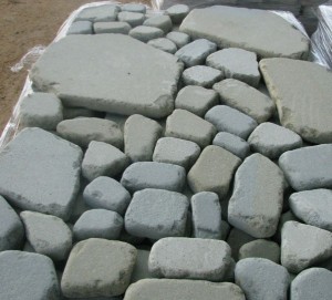 Zdjęcie poniżej pokazuje dzikówkę przed ułożeniem na paletę. Zamieszczamy je, ponieważ dobrze oddaje kolor tego piaskowca. Dalej skontrastowany z innymi kolorami.